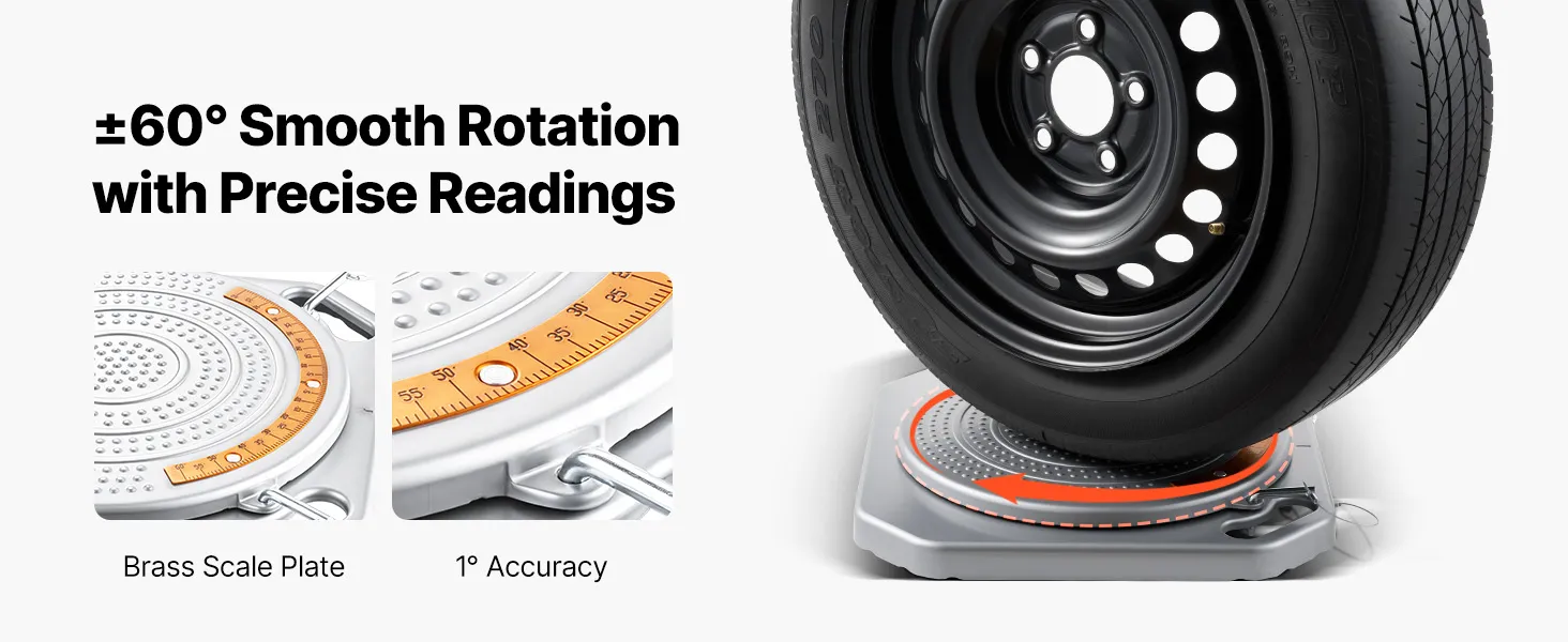 VEVOR Wieluitlijningsdraaitafel voor asmeting 2 t per plaat, messing wijzerplaatmetingen, 360° draaibaar asmeetinstrument met overgangsbrug en drukblok voor auto's, SUV's en lichte vrachtwagens
