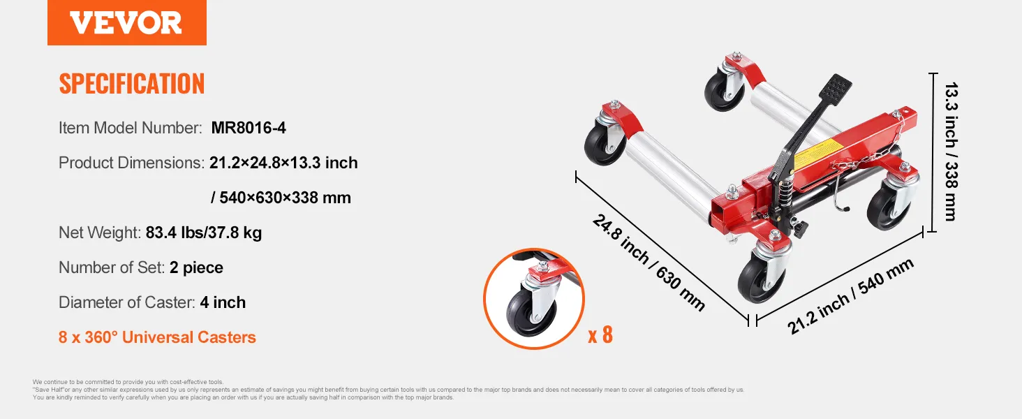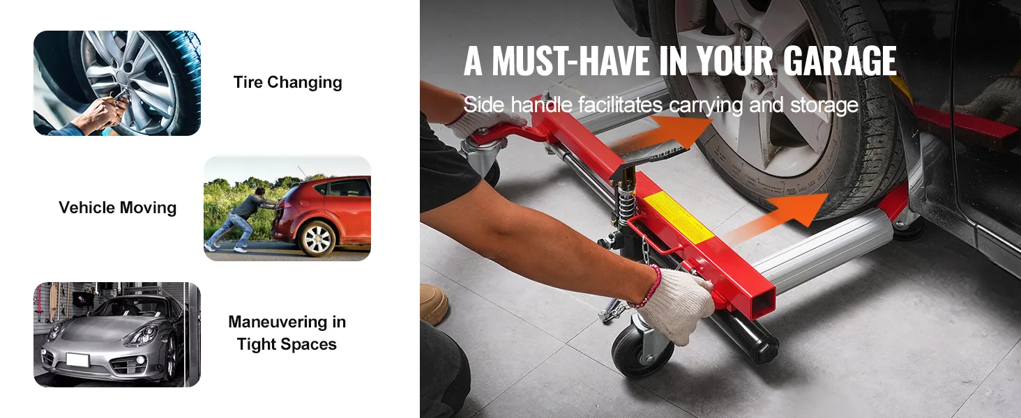 Veelzijdige toepassing: geschikt voor voertuigen met een maximale bandbreedte van 12 inch (305 mm) en een rollengte van 16,3 tot 28,6 inch (415-726 mm). De autotrolley past op verschillende soorten voertuigen en zorgt ervoor dat u de auto snel kunt verplaatsen, banden kunt wisselen, reparaties kunt uitvoeren en meer. Bovendien zorgt het praktische handvatontwerp voor eenvoudig opbergen in uw garage of kofferbak en biedt het betrouwbare hulp wanneer dat nodig is.