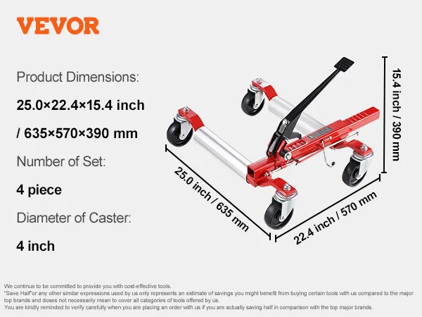 Enhanced Load Capacity: This hydraulic wheel dolly (4 set) easily lifts vehicles up to 1500 lbs(each wheel dolly). Its robust capacity makes it suitable for cars, SUVs, home vehicles, large SUVs, pickups, ATVs, tractors, and more. It facilitates easy movement, maintenance, and tire changes in tight spaces.