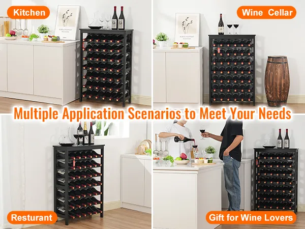 Our freestanding wine rack ighly versatile and fits any space, whether it is a kitchen, dining room, or wine cellar. It also makes a great gift for wine enthusiasts and collectors. Please note, wine is not included.