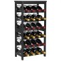 This 6-tier detachable freestanding wine rack free standing floor holds up to 24 bottles. When disassembled, the tiers can be used separately on countertops or in corners. It is compatible with various wine bottle types such as Bordeaux bottles, Pinot Noir bottles, and Champagne bottles.