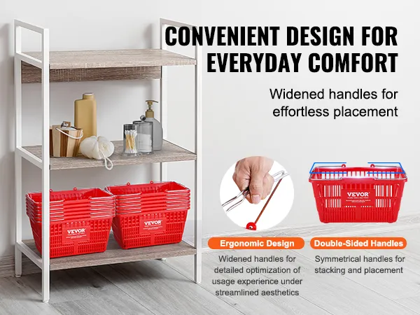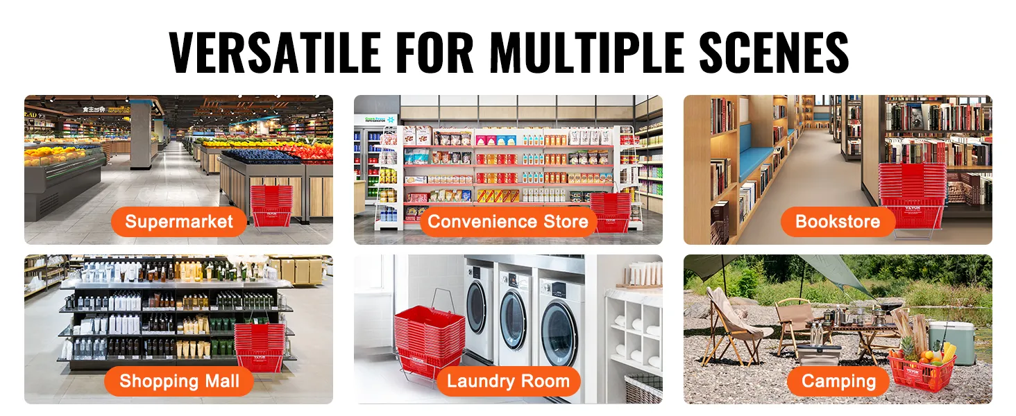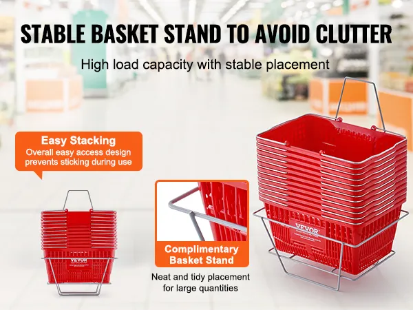 De VEVOR-winkelmand heeft een mandstandaard met een hoge draagkracht. Met deze functie kunt u meerdere plastic winkelmanden op een georganiseerde manier opbergen. Het helpt uw ruimte rommelvrij te houden en is ideaal voor supermarkten of thuis. De standaard is gemaakt om stevig en duurzaam te zijn, zodat uw manden altijd klaar zijn voor gebruik. Dankzij deze functie is het eenvoudig om uw winkelwagens te beheren en te openen. Dus de algehele winkelervaring zal worden verbeterd.