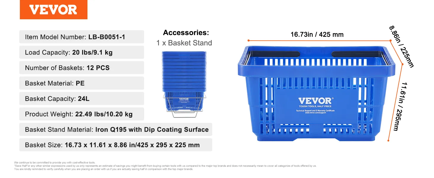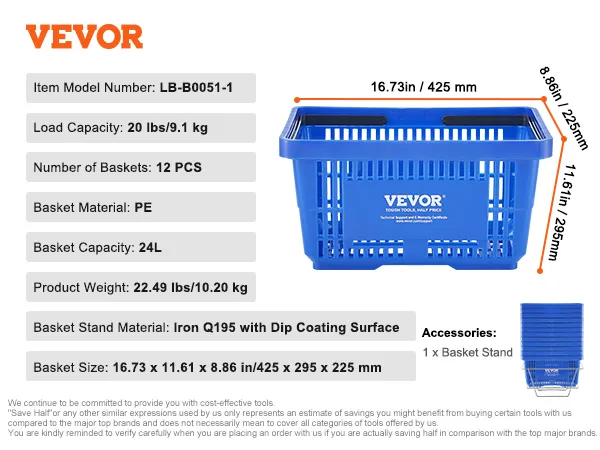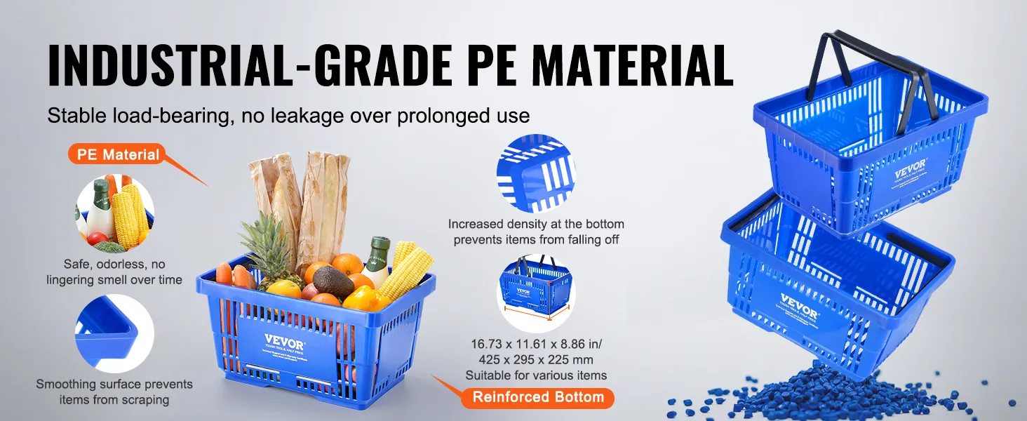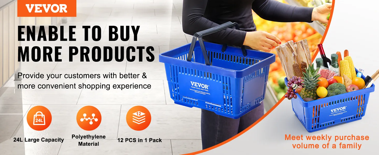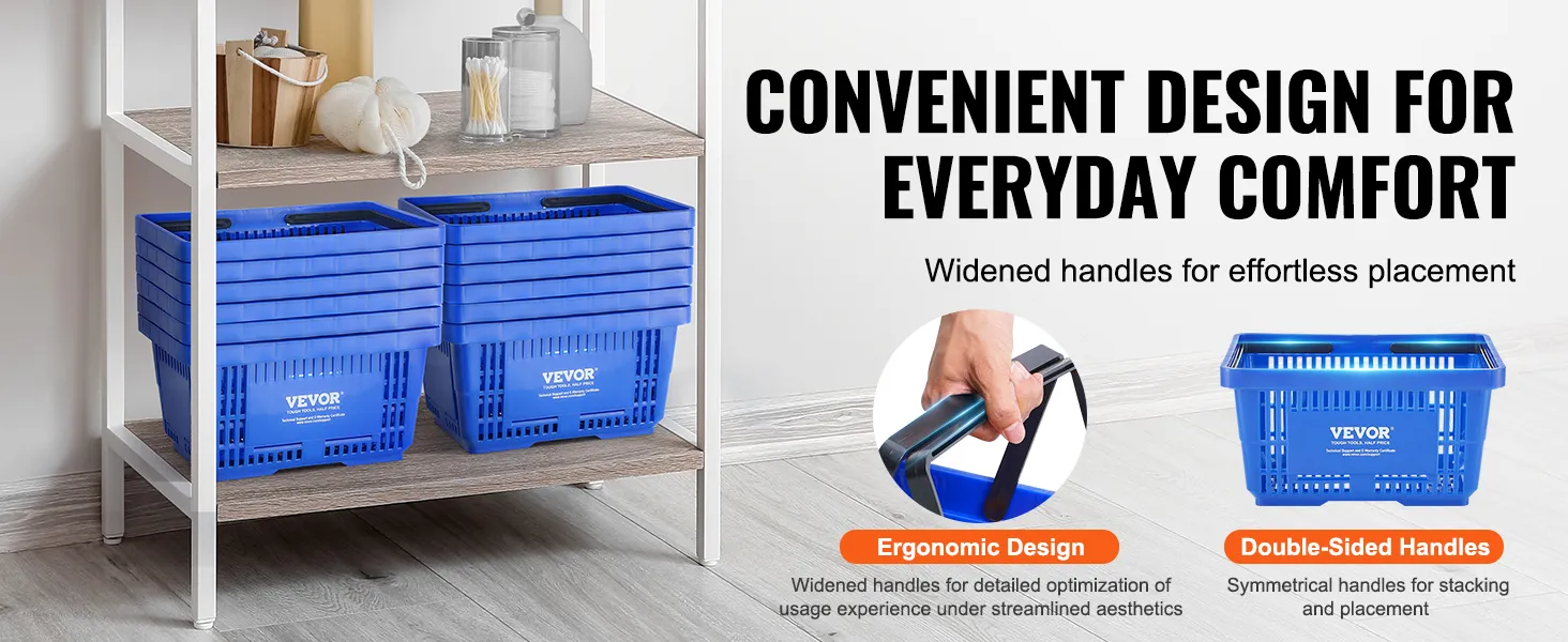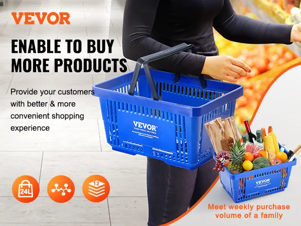 With VEVOR's hand-held shopping basket, say goodbye to shopping struggles! Designed for your needs, it's roomy enough to handle a week's worth of groceries for the whole family. No more juggling bags or worrying about space—it's all sorted with our basket!