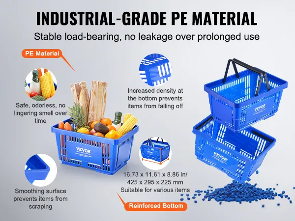 Crafted from top-quality industrial-grade PE material, our store basket is durable without weird smells. Smooth surface, reinforced bottom—it's all about keeping your stuff safe and secure, no matter what you're carrying.