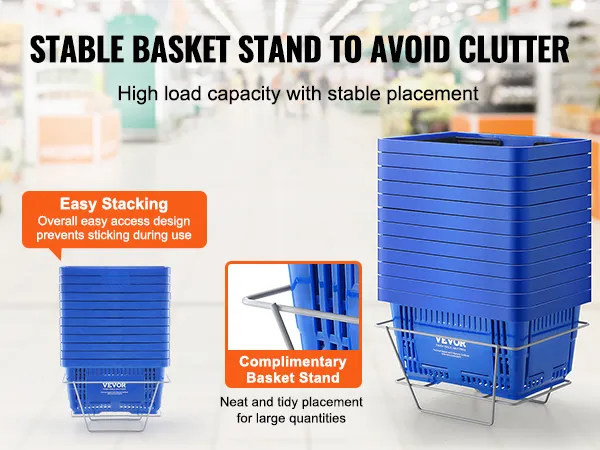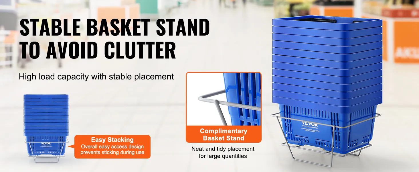 High Load-Bearing Basket Stand: Keep your shopping organized with our basket stand! Easily store multiple plastic shopping baskets and keep your space clutter-free. Ideal for supermarkets or at home, it's a must-have for a convenient shopping experience. Place it throughout the store to attract customers' attention and encourage quick purchases.
