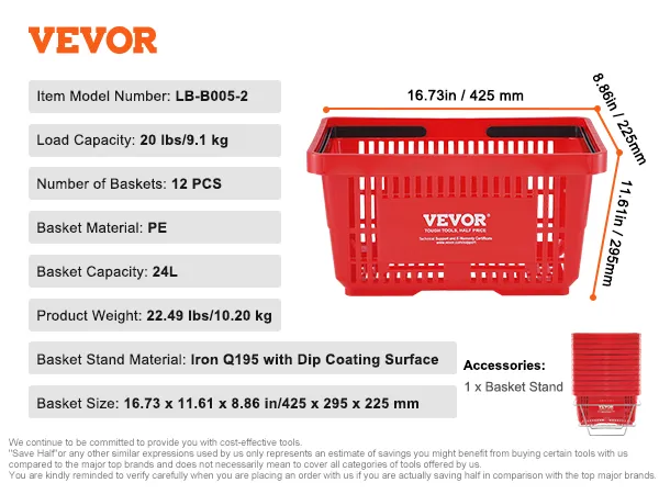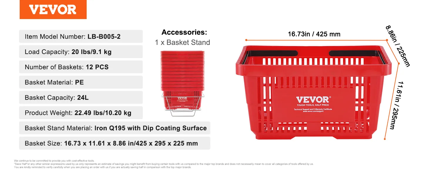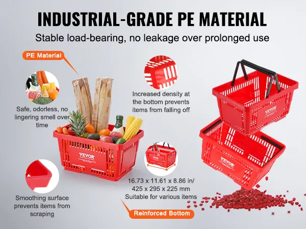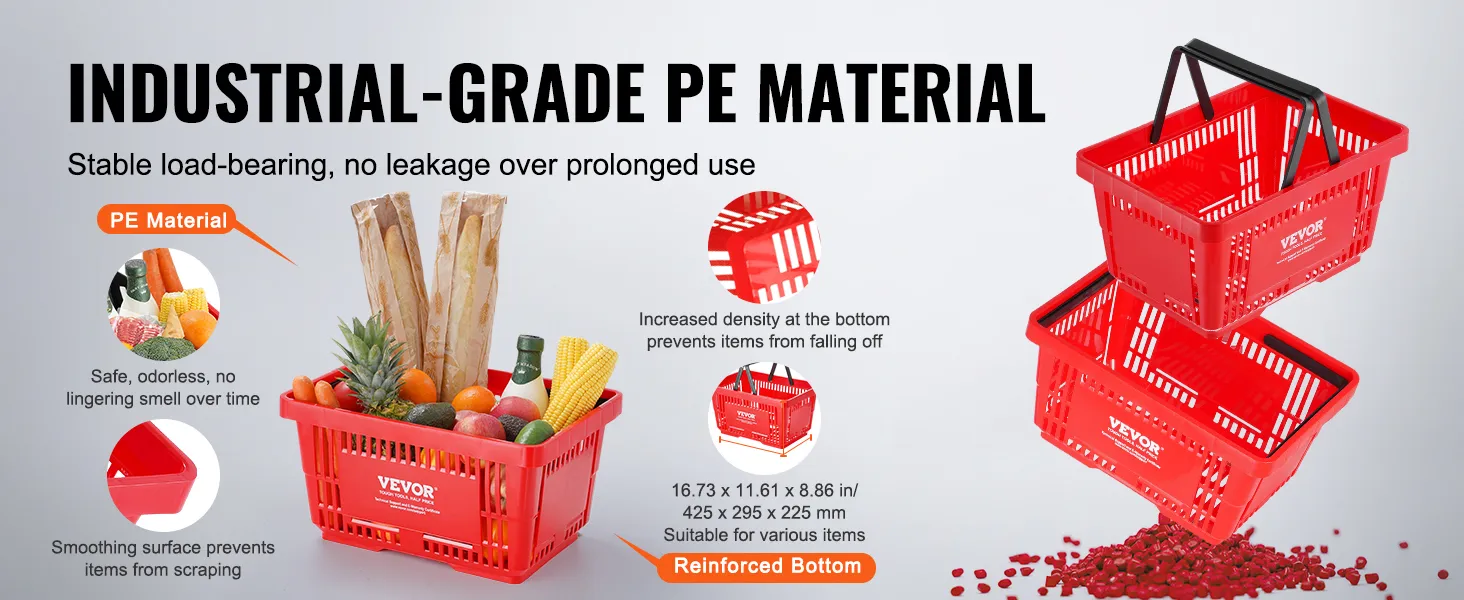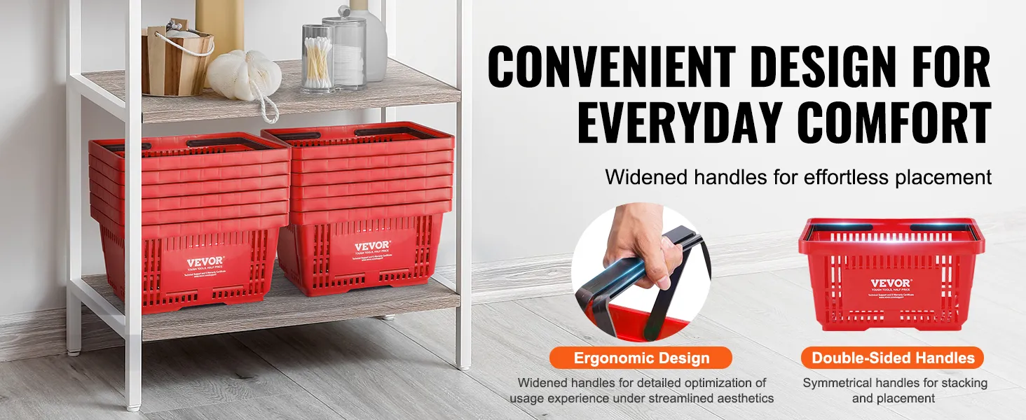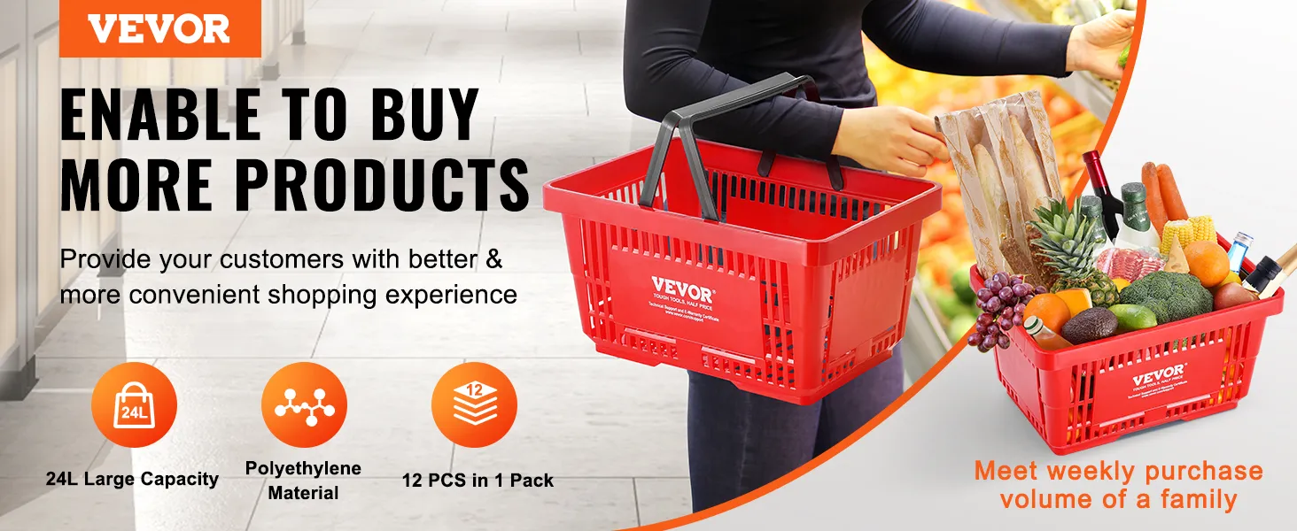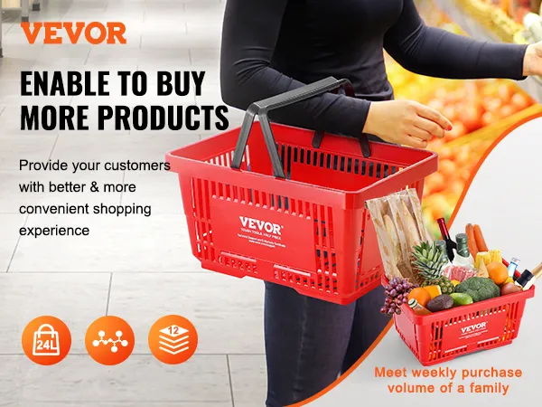 With VEVOR's hand-held shopping basket, say goodbye to shopping struggles! Designed for your needs, it's roomy enough to handle a week's worth of groceries for the whole family. No more juggling bags or worrying about space—it's all sorted with our basket!