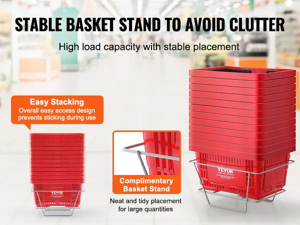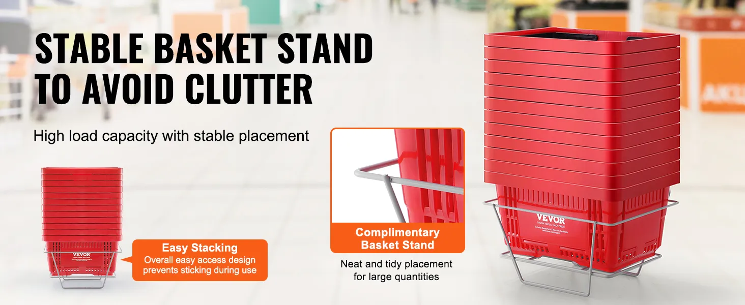 High Load-Bearing Basket Stand: Keep your shopping organized with our basket stand! Easily store multiple plastic shopping baskets and keep your space clutter-free. Ideal for supermarkets or at home, it's a must-have for a convenient shopping experience. Place it throughout the store to attract customers' attention and encourage quick purchases.