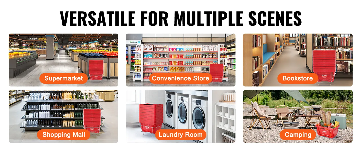Versatile Use: From supermarkets to convenience stores, bookstores to shopping centers, our store shopping basket fits right in! Its stable placement and high load-bearing design ensure stability wherever you go. Say hello to hassle-free shopping anytime, anywhere!