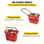 Rode VEVOR kunststof boodschappenmand met wielen, zwarte handgrepen en wielen.
