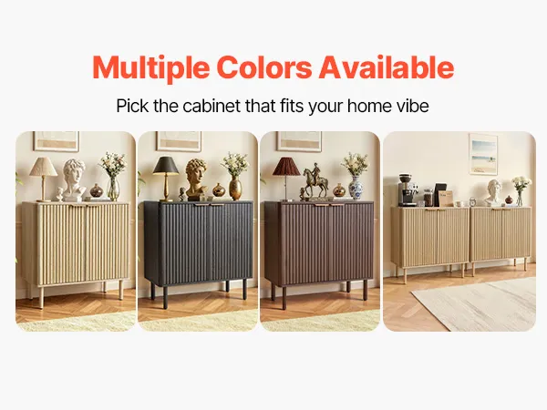 Elegant en gegroefd ontwerp: Deze koffiebarkast heeft verticaal gegroefde panelen en een slanke, gebogen vorm die elegantie aan uw huis toevoegt. Natuurlijke houten oppervlakken en metalen handgrepen combineren eigentijdse en middeleeuwse elementen, waardoor het een stijlvol decoratief meubelstuk is.