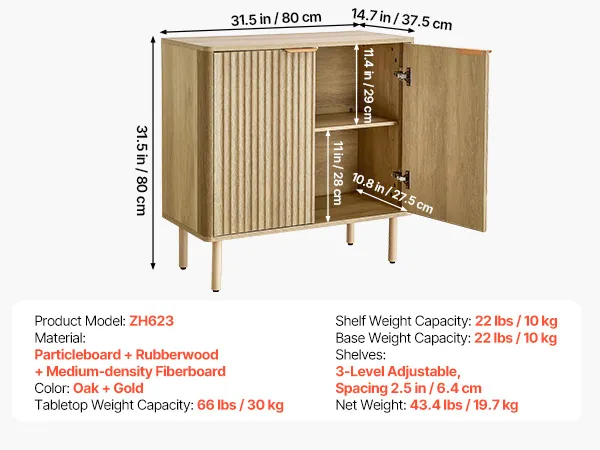 VEVOR Coffee Bar Cabinet, Mid Century Fluted Coffee Bar Table with 2-Tier Storage, Buffet Stand Cabinet with 2 Barn Door, Sideboard Buffet Station for Living Room, Entryway, 80 x 37.5 x 80 cm, Oak