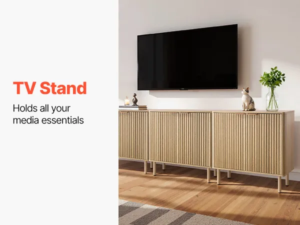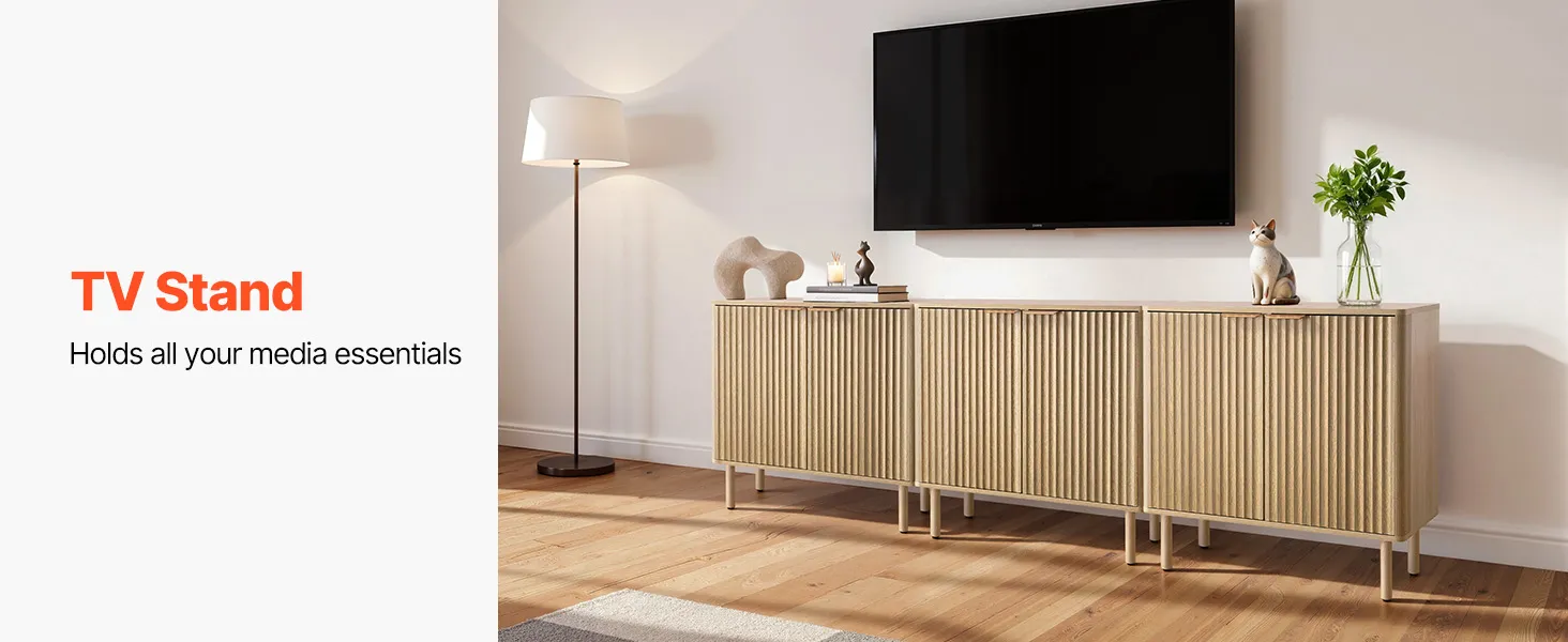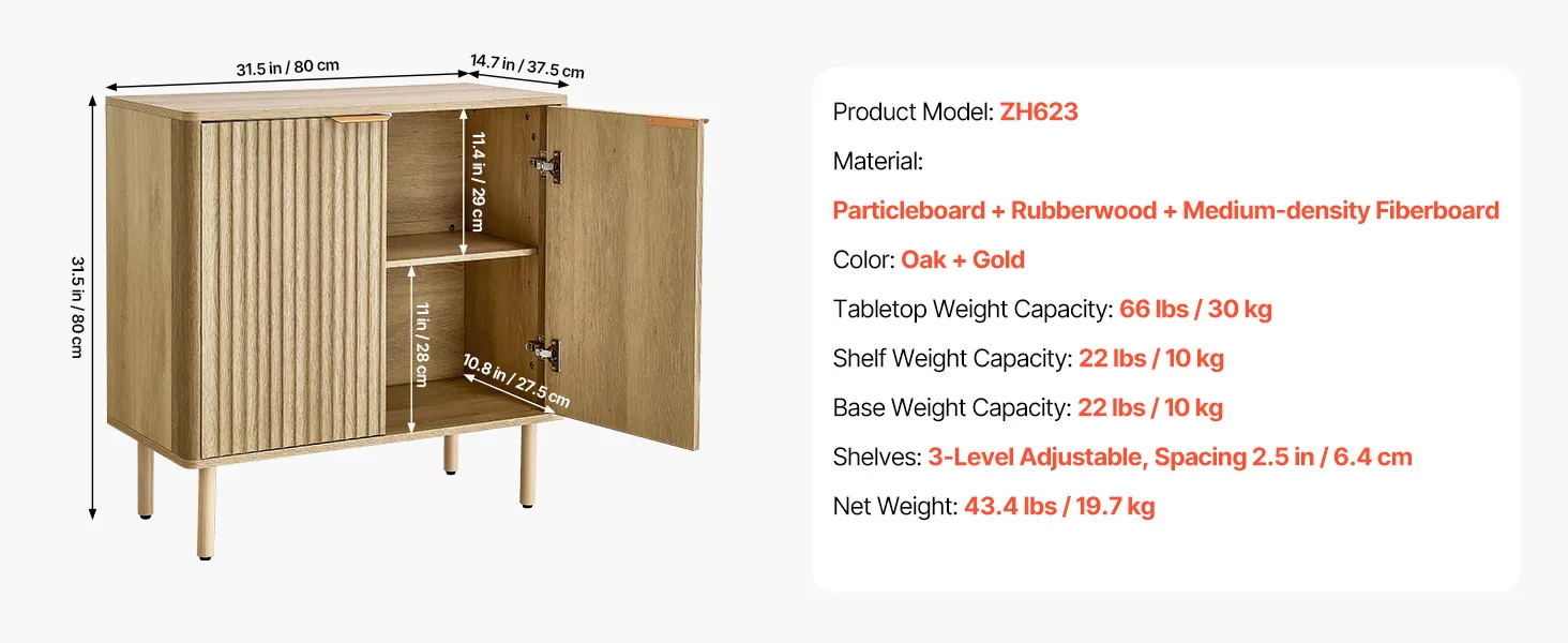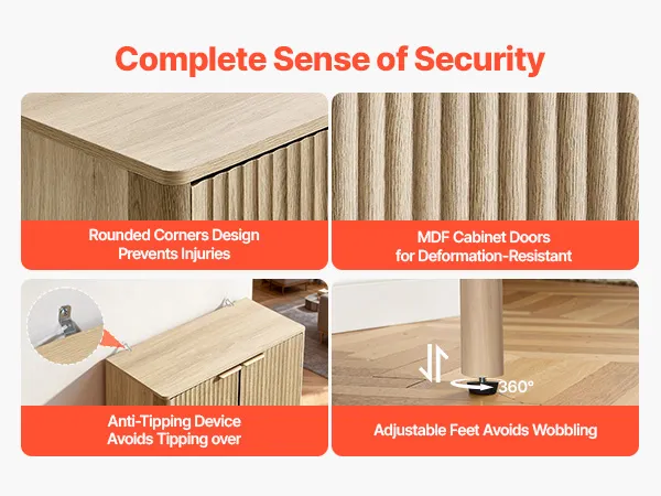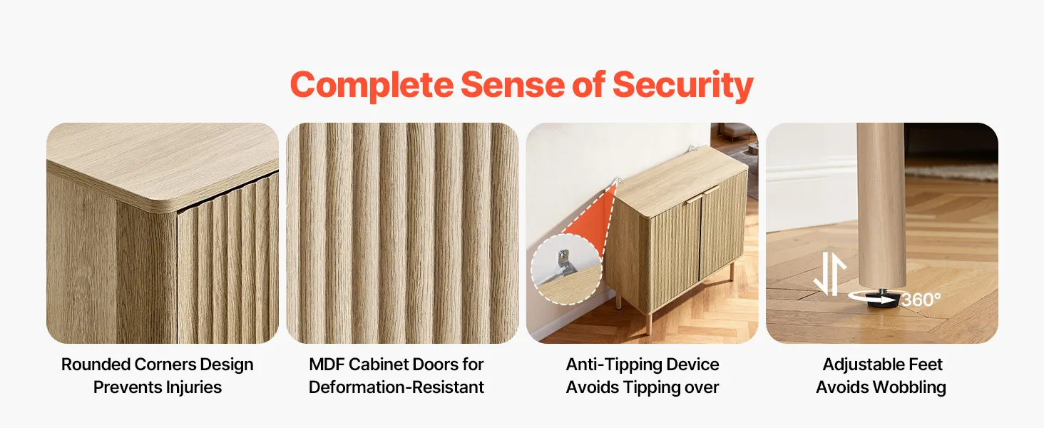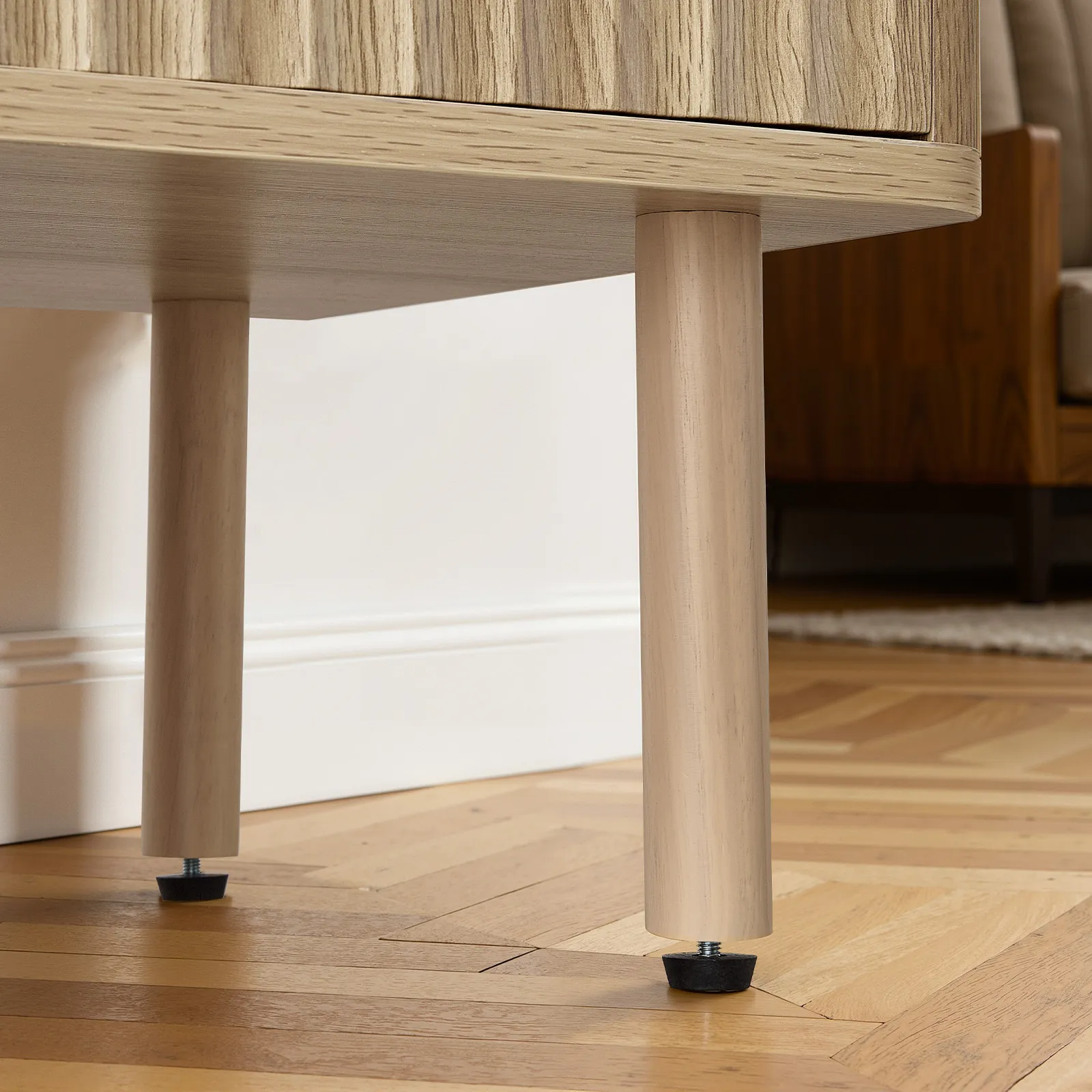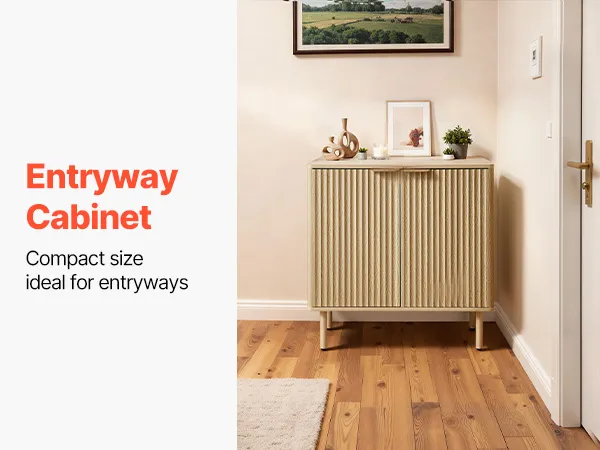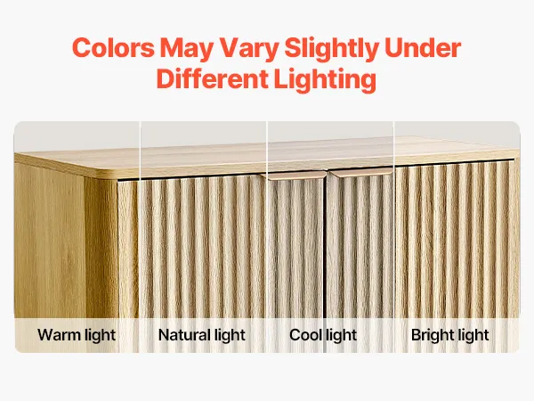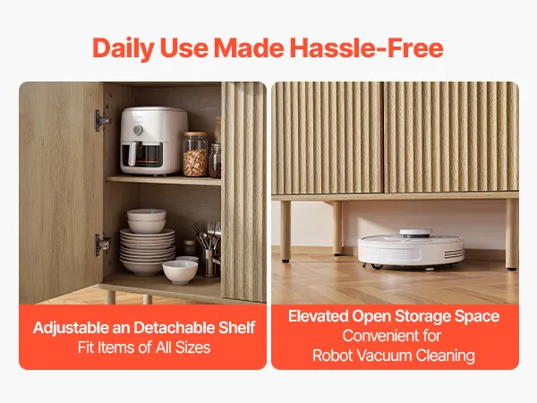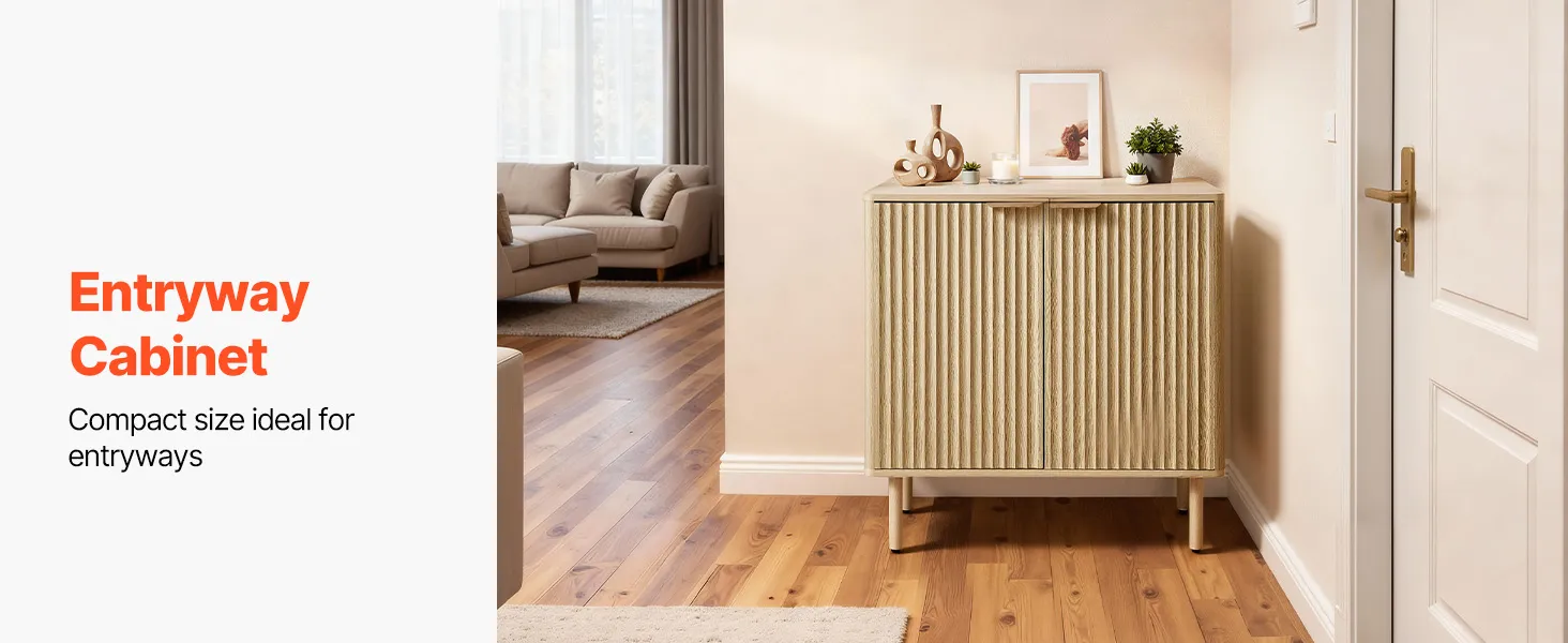Elegant Fluted Design: This coffee bar cabinet features vertical fluted panels and sleek curved silhouette that add elegance to your home. The natural wood finish and metal handles blend modern and mid-century styles, making it both a stylish accent cabinet