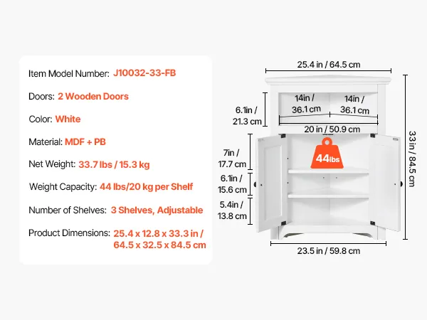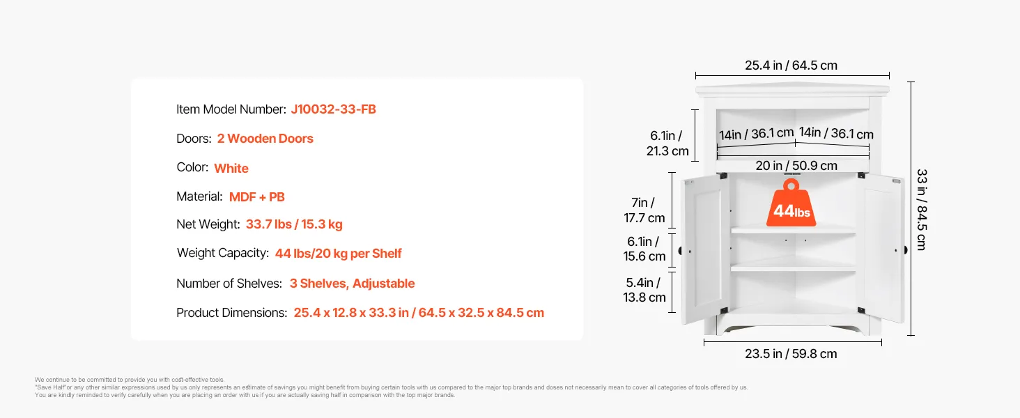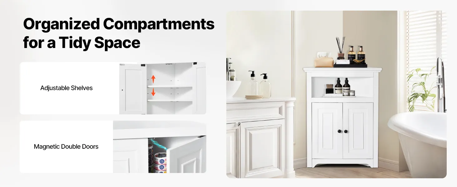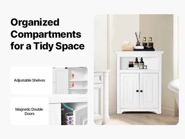 Hassle-Free Setup: All the parts and instructions you need are included, making assembly quick and simple. Grab a friend, and you can have your corner cabinet storage ready in about 60 minutes. Heads up: lighting and screen settings might make the product look slightly different in photos compared to real life. And, for extra peace of mind, we’ve added a corner cabinet with doors for secure storage.