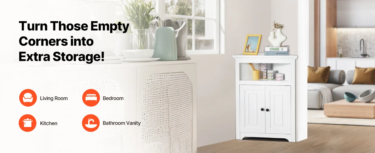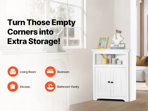 Unlock Your Corner: This corner storage cabinet is designed specifically for those tricky spaces. It fits perfectly in living rooms, dining rooms, bathrooms, or kitchen corners, turning underutilized spots into practical storage. Plus, it adds a touch of charm and life to your home—your corners will thank you!