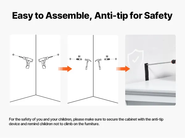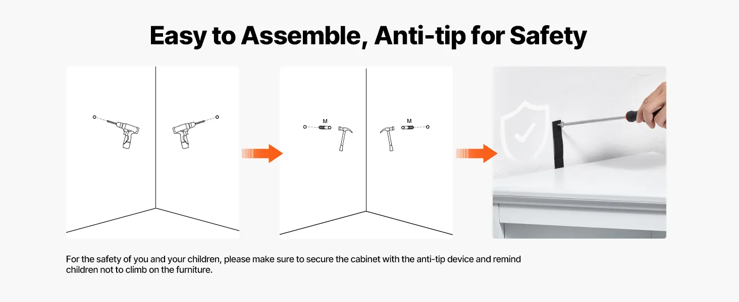 We’ve added a tip-over prevention device—please make sure to install it for added safety and stability. This feature ensures your cabinet stays secure and safe to use, especially in homes with children or pets.