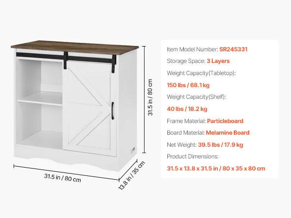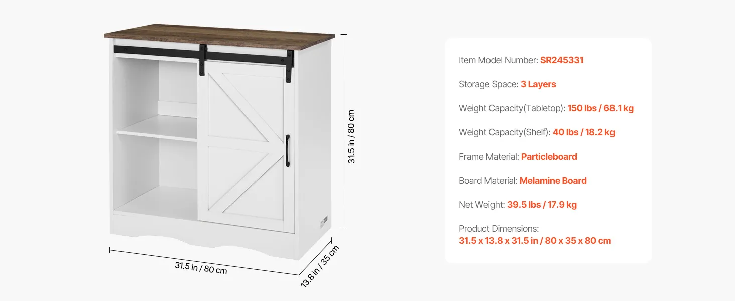 VEVOR Coffee Bar Cabinet, 31.5 x 13.8 x 31.5 in Farmhouse Coffee Bar Cabinet with 3-Tier Storage, Coffee Bar Table with Barn Door, Farmhouse Sideboard Buffet Cabinet for Living Room, Entryway