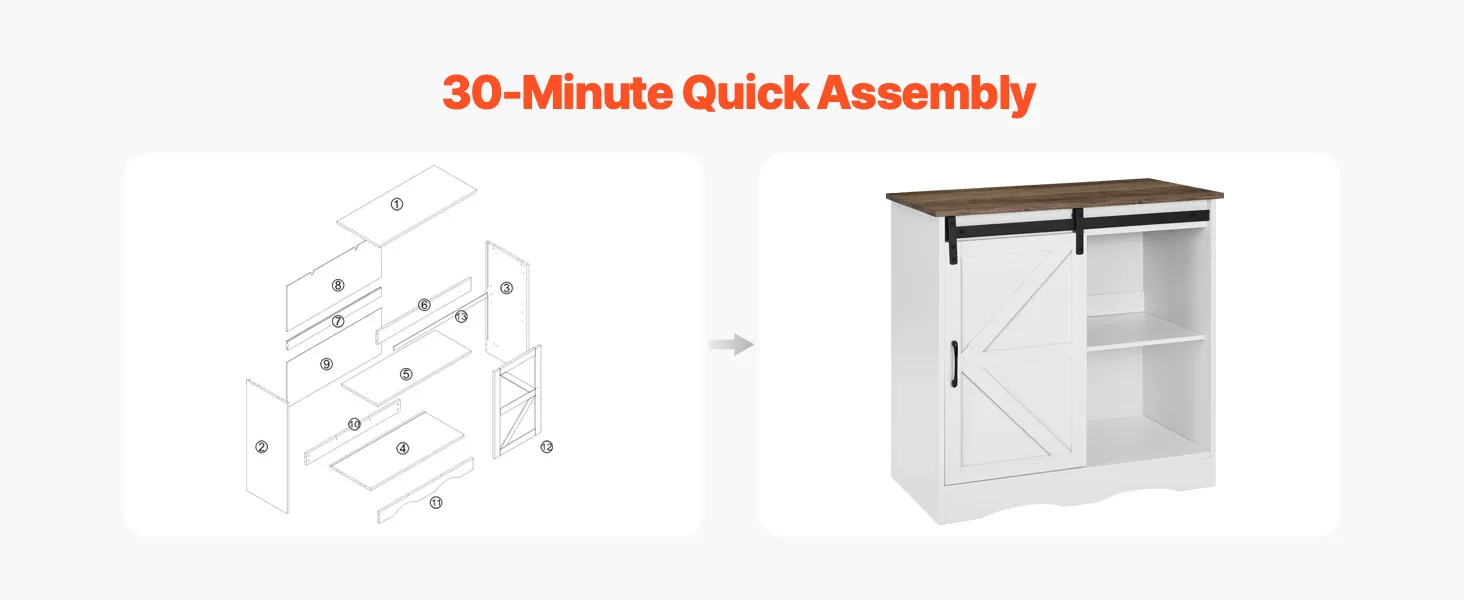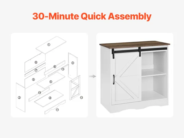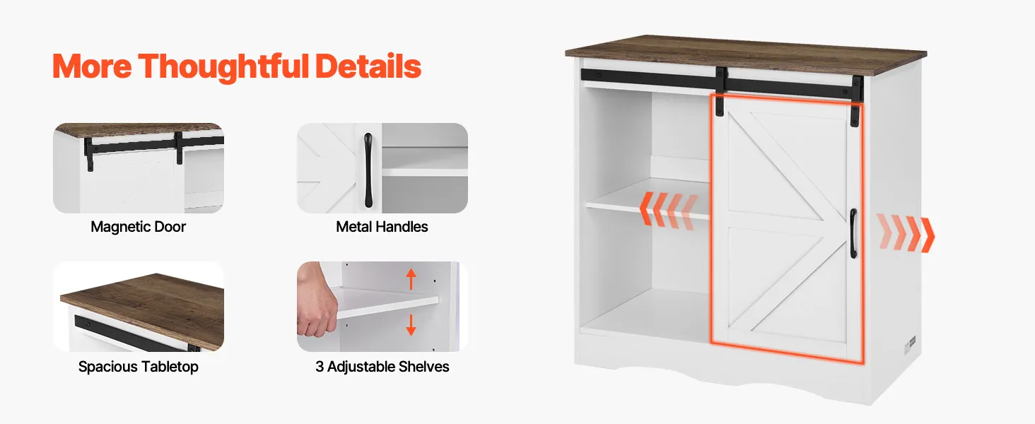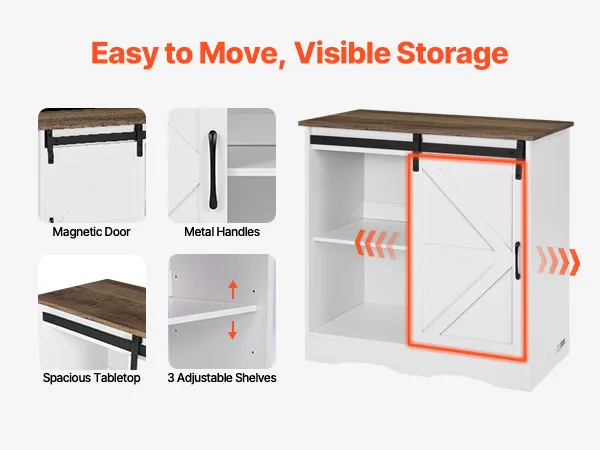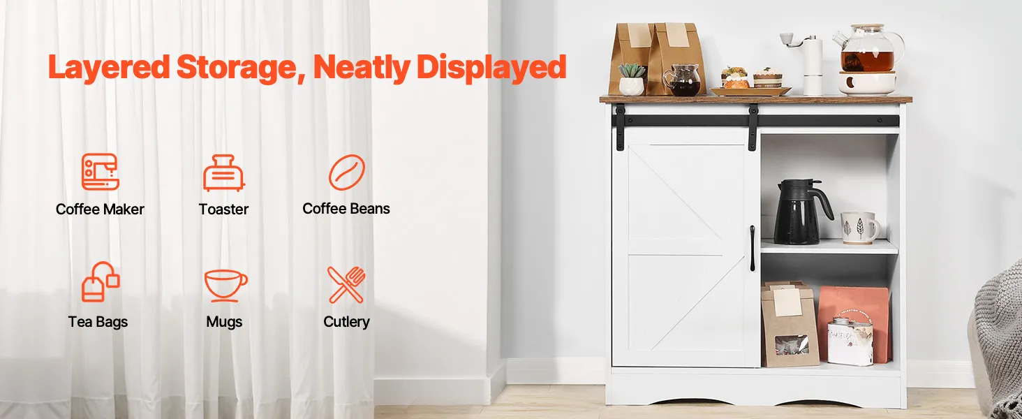 Easy Assembly & Use: This coffee station cabinet comes with detailed instructions for quick assembly. The unique barn doors not only save space but also slide easily without requiring extra clearance, making it simple to access and organize your items in this coffee bar cabinet station.