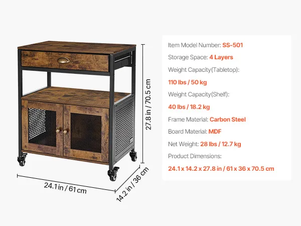 VEVOR Coffee Bar Cabinet, 24.1 x 14.2 x 27.8 in Farmhouse Coffee Bar Cabinet with 4-Tier Storage, Movable Coffee Bar Table with Wheels & Mesh Door, Sideboard Buffet Cabinet for Kitchen, Entryway