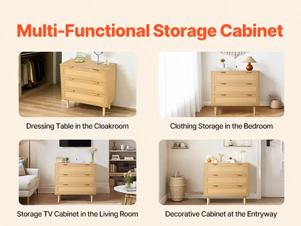 Deze ruime ladekast van rotan voor de slaapkamer biedt georganiseerde, gecompartimenteerde opbergruimte voor kleding. Het handgemaakte rotanblad, met zijn natuurlijke textuur, houdt kleding droog en is geschikt voor slaapkamers, woonkamers of hallen. Een ladekast is veelzijdig en combineert functionaliteit met elegantie.