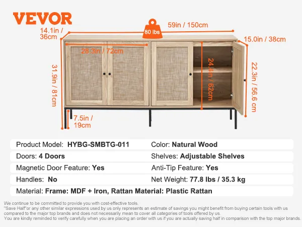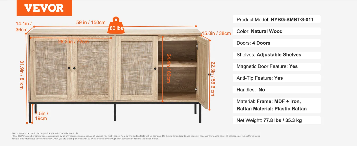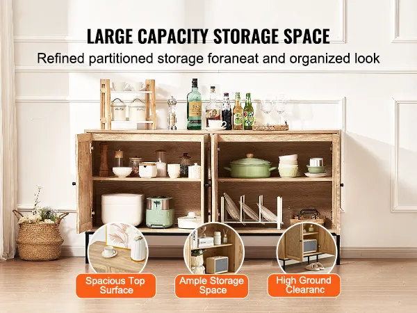 Stabiele en stevige constructie: onze buffetkast beschikt over een uitstekend draagvermogen en stabiliteit en ondersteunt maximaal 36,3 kg, waardoor hij geschikt is voor zware voorwerpen zoals koffiemachines en kleine ovens. Er wordt een anti-tip meegeleverd en wij raden aan deze te installeren voor extra veiligheid en stabiliteit.