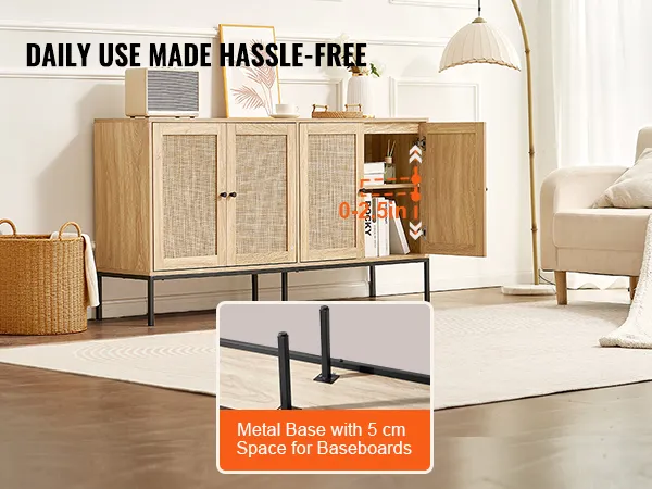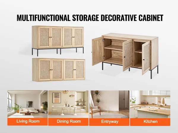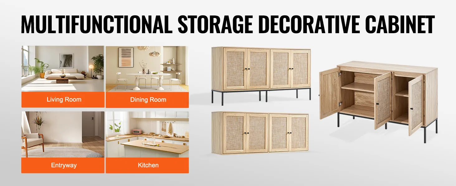 MULTIFUNCTIONEEL - Deze rotan buffetkast biedt de perfecte opbergoplossing en voegt stijl toe aan elke kamer. Het kan worden gebruikt als keukendressoir, barkast, slaapkameropbergmeubel of schoenenkast in de hal. De milieuvriendelijke materialen zijn veilig en gemakkelijk schoon te maken, waardoor deze kast geschikt is voor elke omgeving. Let op: Gebruik bij de montage geen elektrisch gereedschap.
