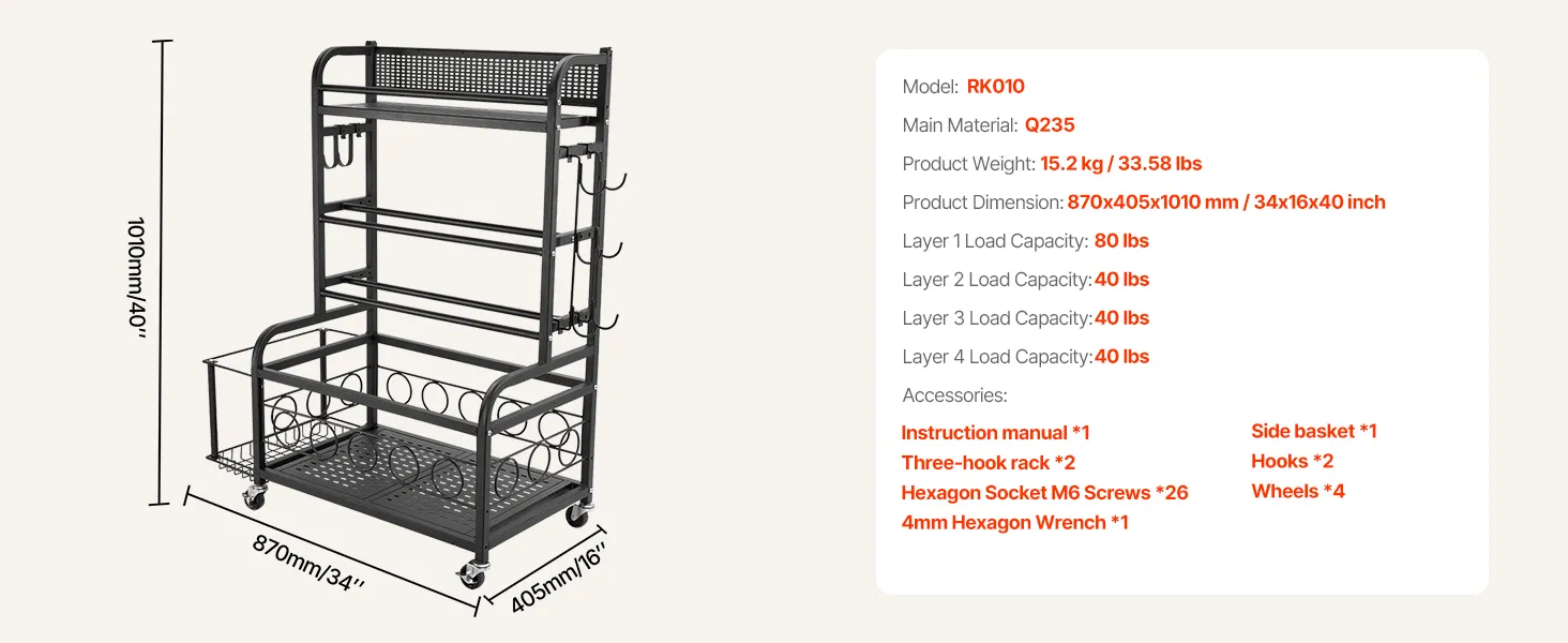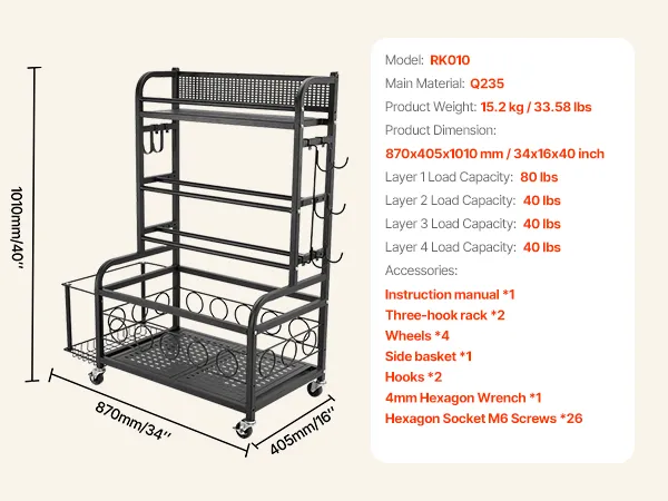 Store Various Items: The yoga mat storage rack helps store your yoga mats, dumbbells, kettlebells, yoga bricks, resistance bands, rollers, foam rollers, and more, keeping your items neat and organized. Overall size: 34x16x40 inch/ 870x405x1010 mm