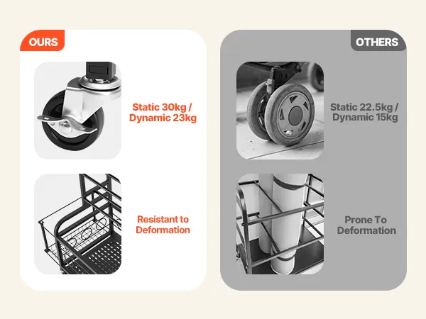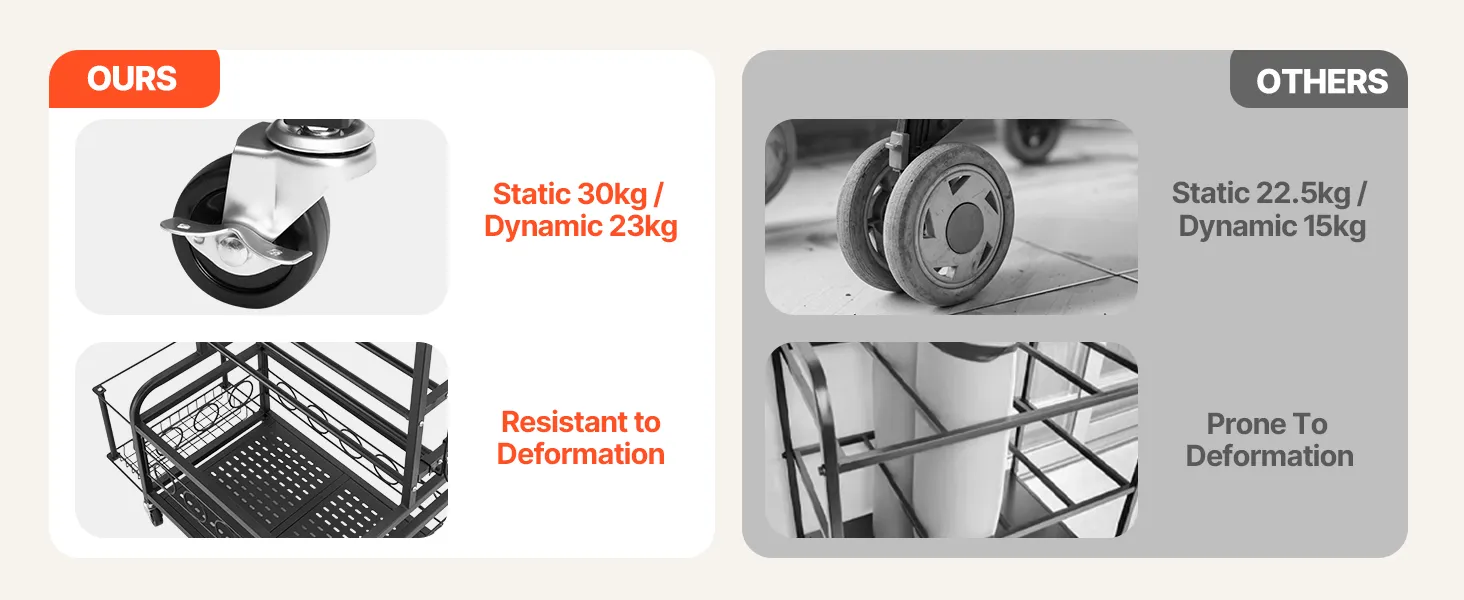 High Load Capacity Rubber Casters: The weight rack features four swivel wheels that can rotate 360°, with two of them lockable, allowing you to easily move it anywhere and securely lock it in place. Caster load capacity: static 30kg, dynamic 23kg