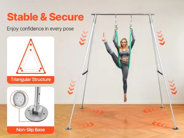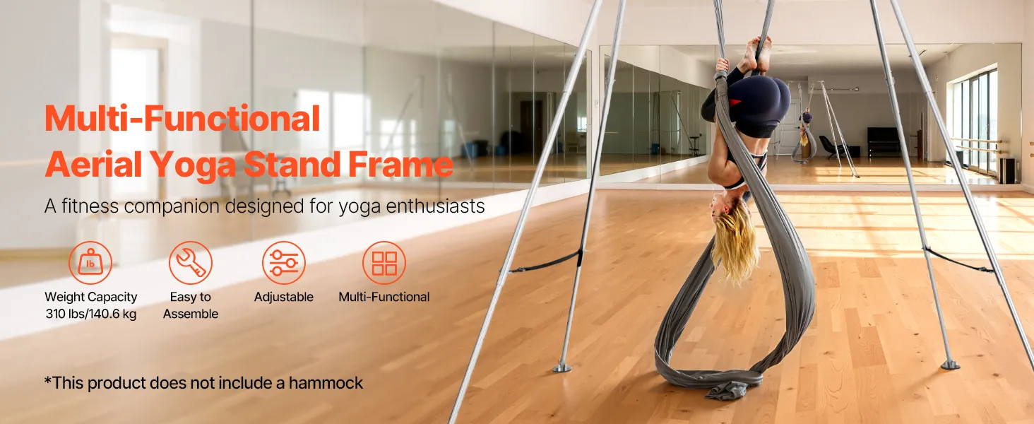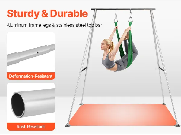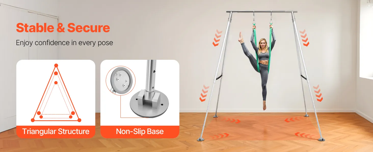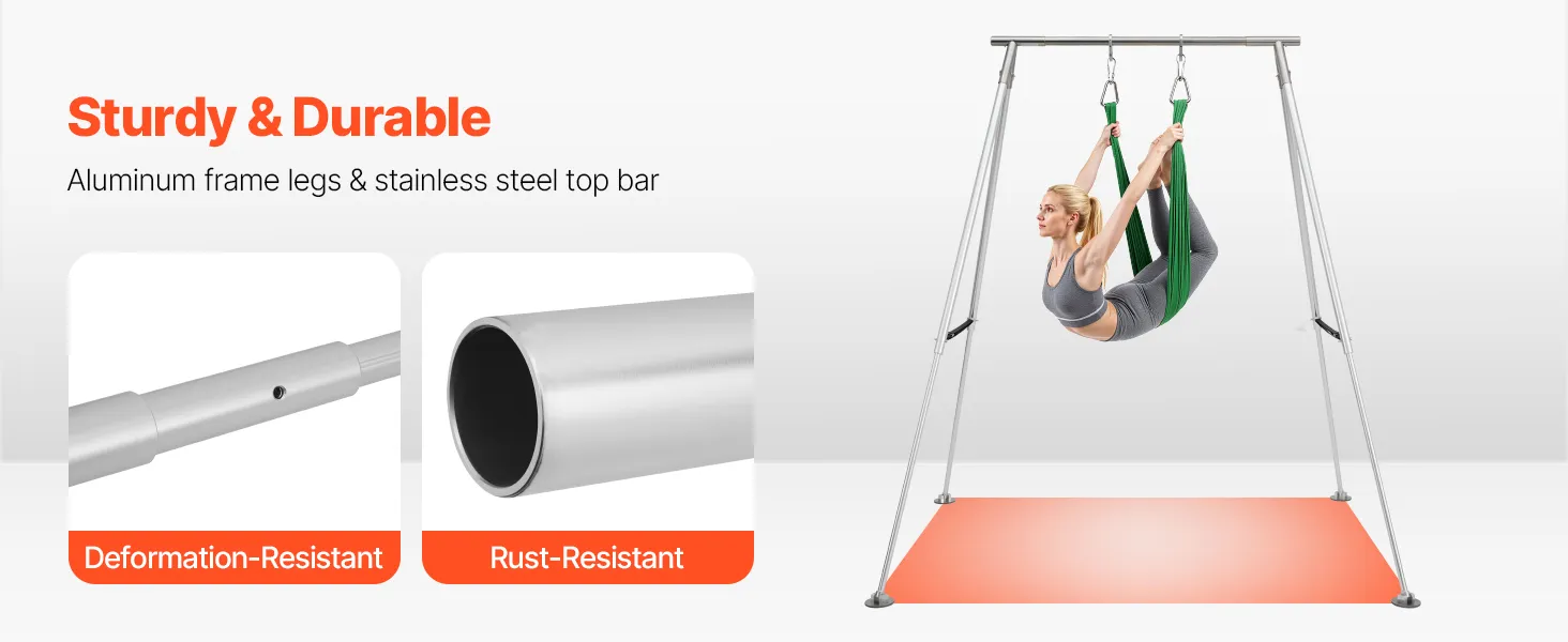 VEVOR Yoga Stand Frame Swing Stand met max. 140,6 kg draagvermogen, optrekstandaard met driehoekige structuur, aerial silk stand met in hoogte verstelbare poten van aluminium frame, Aerial Yoga