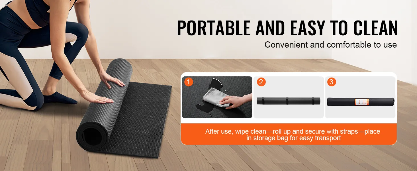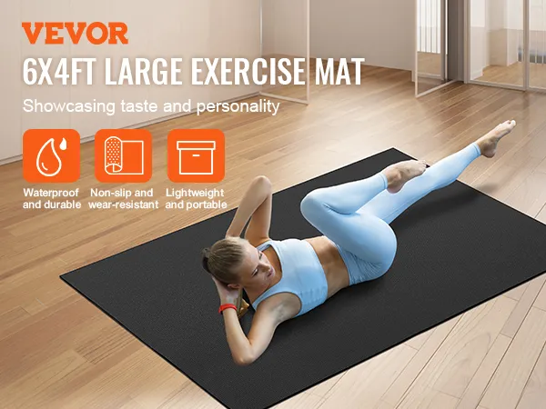 VEVOR Exercise Mat, Non Slip High Density Premium Yoga Mat, Exercise Yoga Mat for Men & Women, Fitness & Exercise Mat with Bag & Carry Strap, for All Types of Home Yoga, Pilate & Floor Workout (6x4ft)