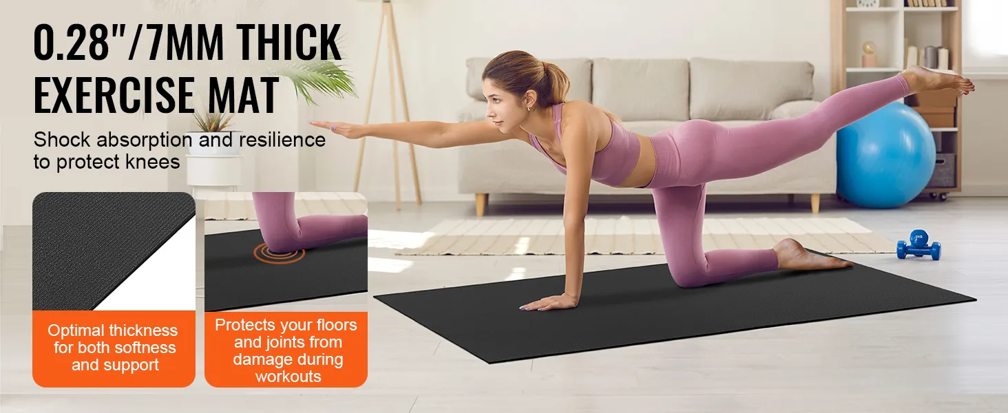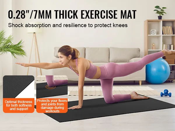 Protects Your Floor and Joints: The 0.28"/7mm thick exercise mat effectively protects your carpet or hardwood floors from scratches. The high-density thick mat offers excellent cushioning, combining support and softness to protect your joints from injury during exercise.