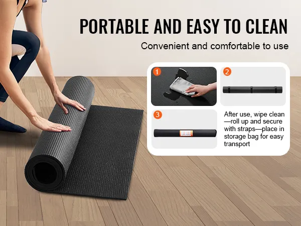 Easy to Clean and Store: The thick yoga mat includes a soft, highly absorbent fiber towel, a storage bag, and 3 straps. After each use, it is easy to clean and wipe down the mat, roll it up for storage, and transport it conveniently.