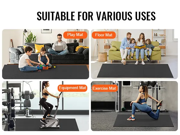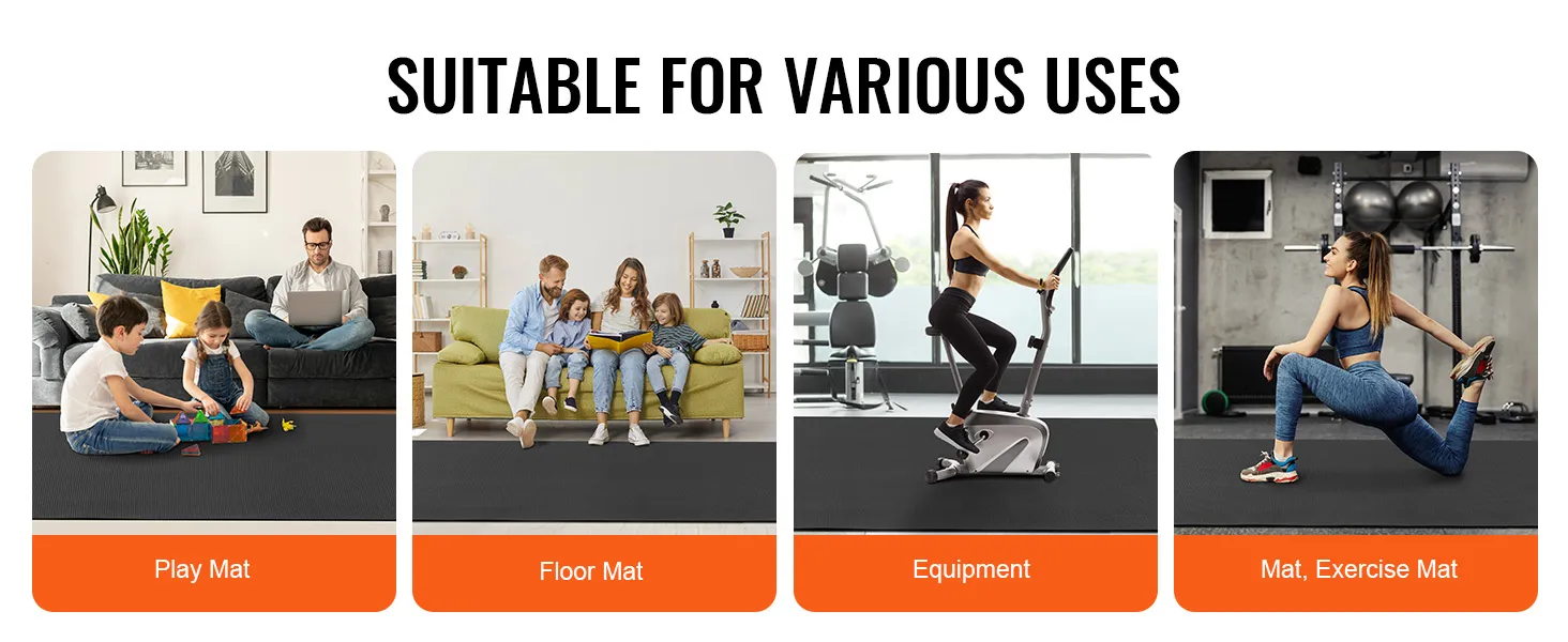 Suitable for Various Uses: Our fitness & exercise mat is suitable for all floor types, including carpets, tiles, or wooden floors in living rooms or bedrooms, as well as concrete floors in garages, patios, or basements. It can be used as a play mat, floor mat, equipment mat, or exercise mat.
