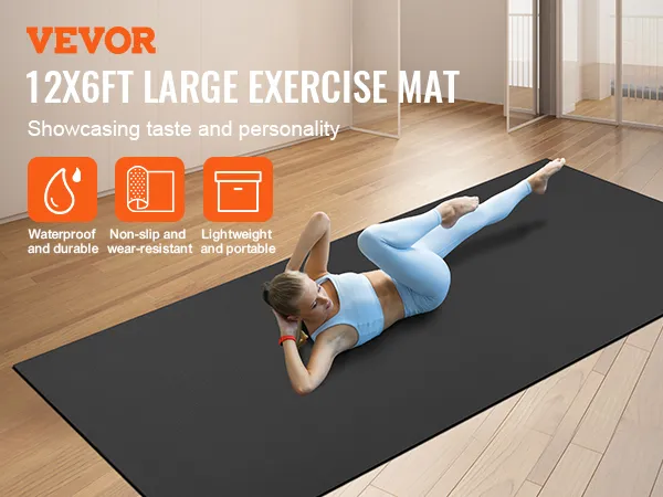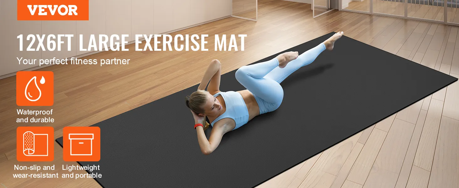 VEVOR Exercise Mat, Non Slip High Density Premium Yoga Mat, Exercise Yoga Mat for Men Women, Fitness & Exercise Mat with Bag & Carry Strap, for All Types of Home Yoga, Pilate & Floor Workout (12x6ft)