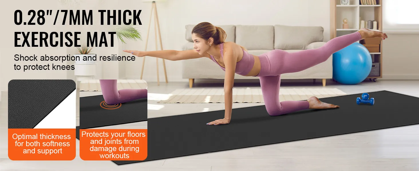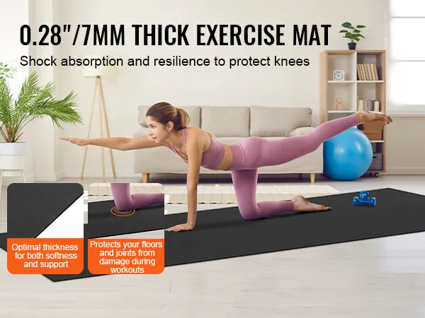 Protects Your Floor and Joints: The 0.28"/7mm thick exercise mat effectively protects your carpet or hardwood floors from scratches. The high-density thick mat offers excellent cushioning, combining support and softness to protect your joints from injury during exercise.
