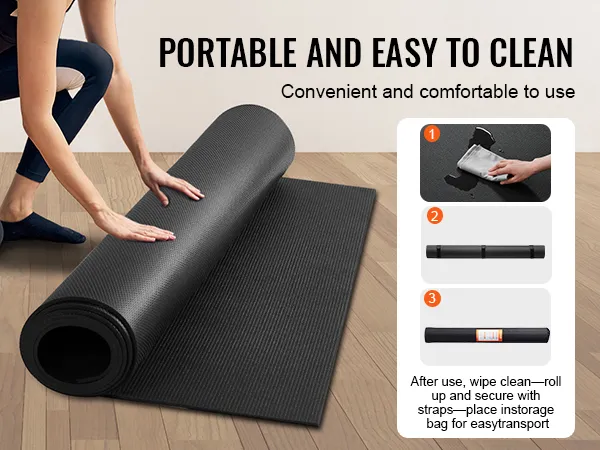 Comes with fiber towel, carrying strap and storage bag, making our exercise mat easy to clean, portable, and easy to store.