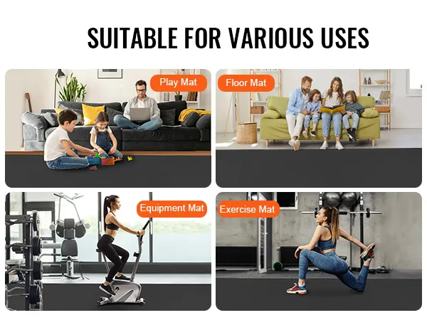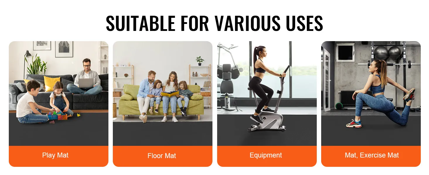 Suitable for Various Uses: Our fitness & exercise mat is suitable for all floor types, including carpets, tiles, or wooden floors in living rooms or bedrooms, as well as concrete floors in garages, patios, or basements. It can be used as a play mat, floor mat, equipment mat, or exercise mat.