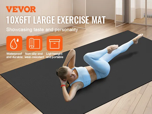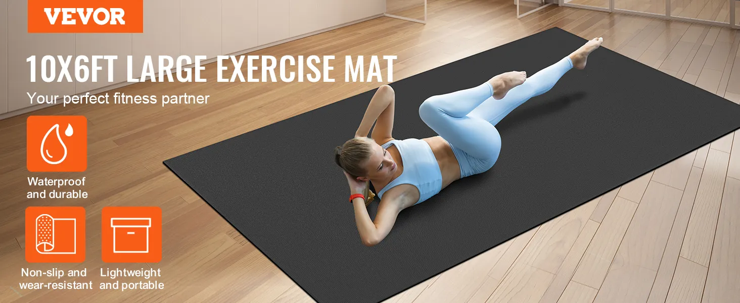 VEVOR Exercise Mat, Non Slip High Density Premium Yoga Mat, Exercise Yoga Mat for Men Women, Fitness & Exercise Mat with Bag & Carry Strap, for All Types of Home Yoga, Pilate & Floor Workout (10x6ft)