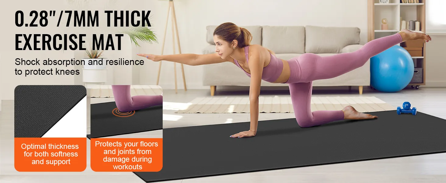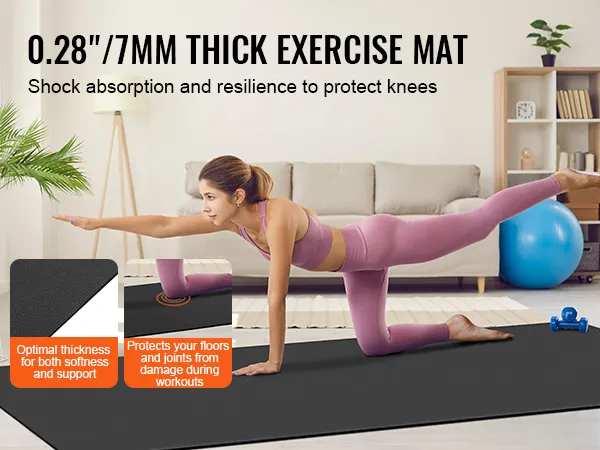 Protects Your Floor and Joints: The 0.28"/7mm thick exercise mat effectively protects your carpet or hardwood floors from scratches. The high-density thick mat offers excellent cushioning, combining support and softness to protect your joints from injury during exercise.