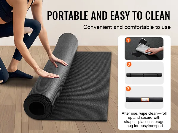 Easy to Clean and Store: The thick yoga mat includes a soft, highly absorbent fiber towel, a storage bag, and 3 straps. After each use, it is easy to clean and wipe down the mat, roll it up for storage, and transport it conveniently.