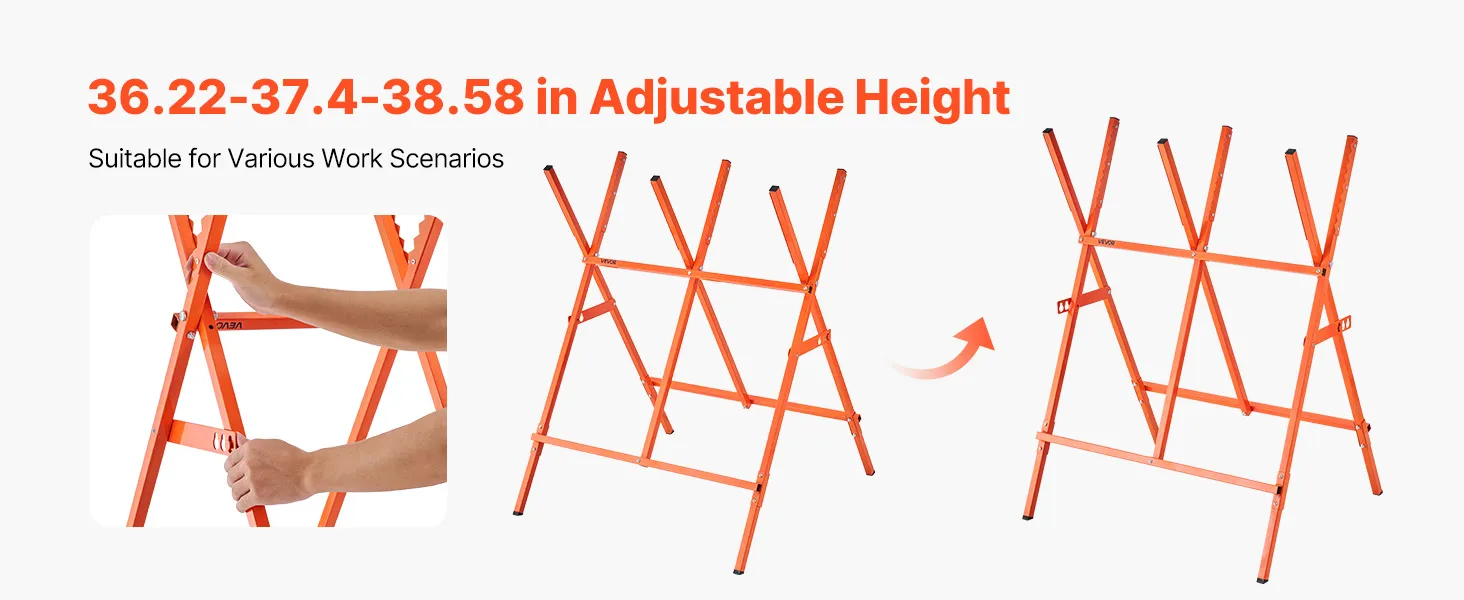 In hoogte verstelbaar: Deze draagbare houtzaagbok maakt flexibele hoogteverstelling mogelijk voor gebruikers van verschillende lengtes. Of u nu staat, zit of verschillende gereedschappen gebruikt, hij past zich aan de professionele werkvereisten aan.