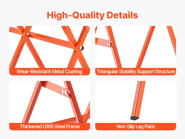 X-vormig pootframe: De X-vormige, opvouwbare zaagbokpoten zorgen voor een evenwichtige gewichtsondersteuning en een stabiele constructie. Gekartelde antislipgroeven aan de bovenkant houden het materiaal op zijn plaats tijdens het zagen.