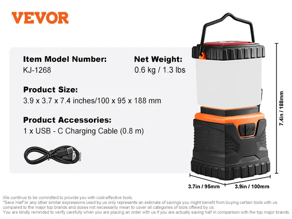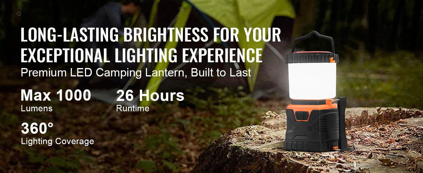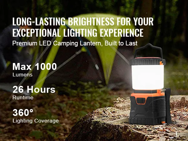 Power Bank with Long Battery Life: Enjoy up to 26 hours of light from the 1000LM lantern, and use it as a power bank in emergencies. USB-C charging in 8-10 hours with a 0.8 m cable included. Stay powered up and ready for anything, whether you're out camping or facing power outages.