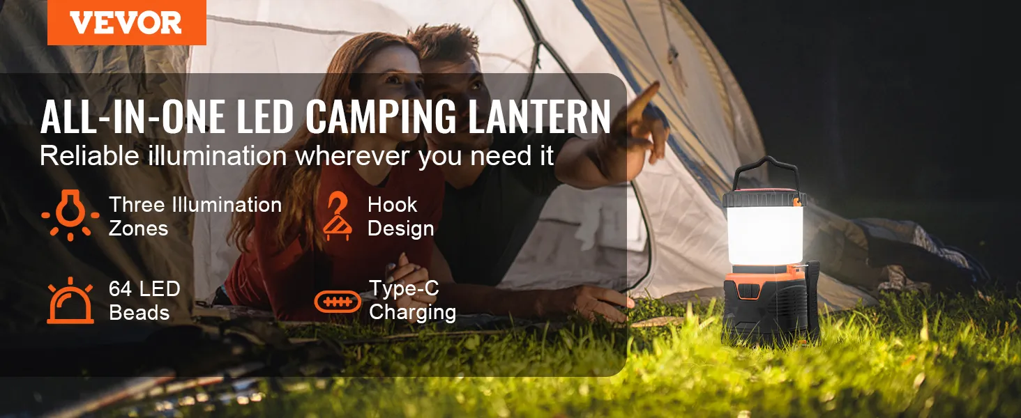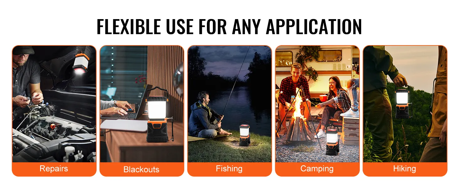 Suitable for camping, hiking, and power outages. Our portable camping lantern is a must-have for outdoor adventures, ensuring you have reliable light wherever you go. Take it along for any adventure and light up your journey.