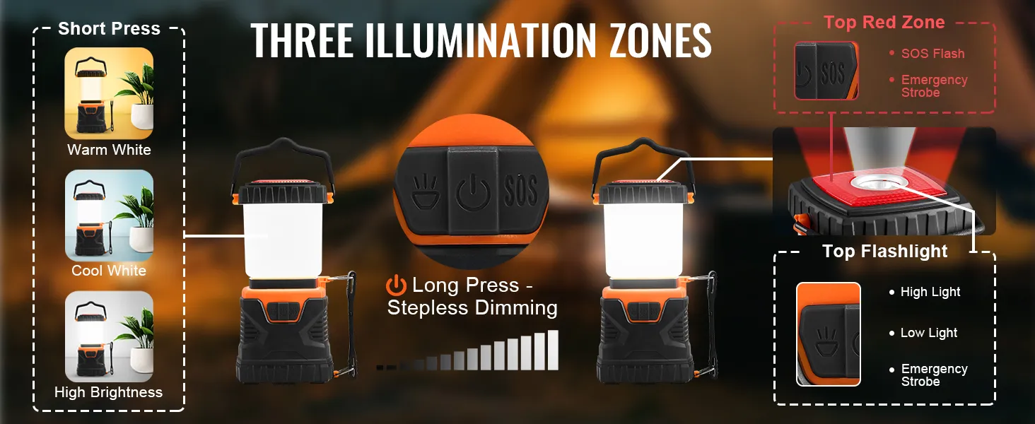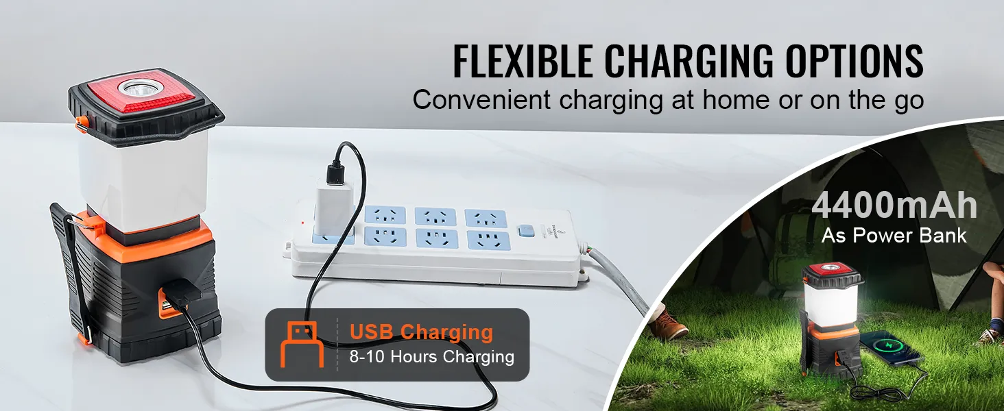 Enjoy up to 26 hours of light with the built-in 4400mAh battery. Plus, use our camping light as a power bank in emergencies to keep your devices charged. Stay prepared and connected no matter where you are.