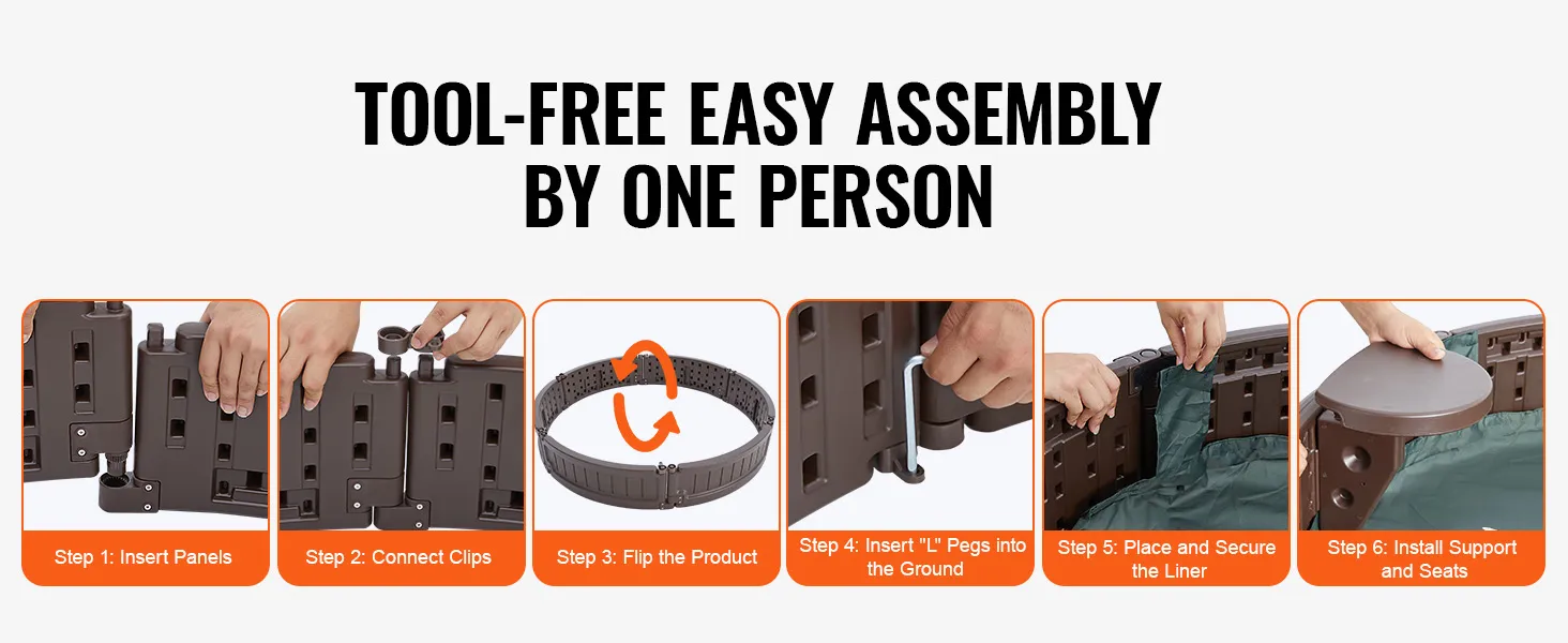 Easy Assembly: Our kids sandbox is easy to assemble with no tools required. Simply insert the panels into the slots, place the liner, and attach the seats. Clear installation instructions are included to help you create the perfect children's play space in no time.