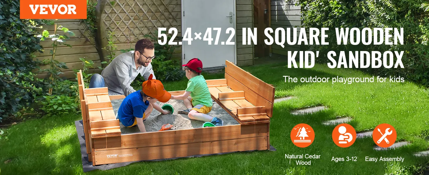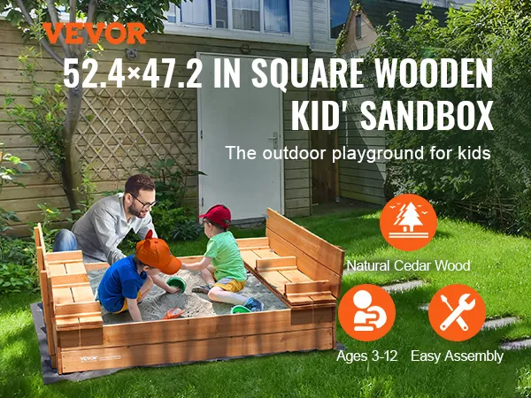 With dimensions of 52.4 x 47.2 in the sand box can accommodate 2-4 children aged 3-12 playing simultaneously. This spacious design turns your backyard into a mini playground, enhancing children's interaction, cooperation, and social skills, and fostering teamwork and communication.