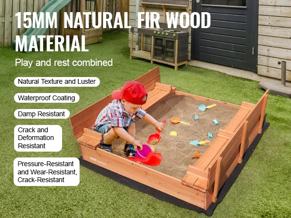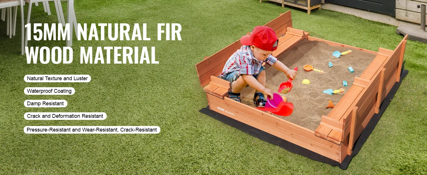 We carefully selected natural fir wood, which is beautiful, and resistant to pressure and wear. The surface with a waterproof coating ensures the sandbox with cover remains undamaged in rainy or humid environments, providing children with a comfortable and safe play experience.