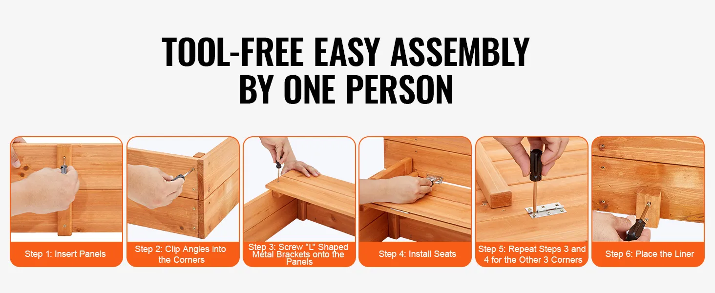 Installing the sand pit requires no complex tools and can be easily completed by one person. It comes with detailed installation instructions, allowing you to set up the sandbox quickly by following our tutorial.