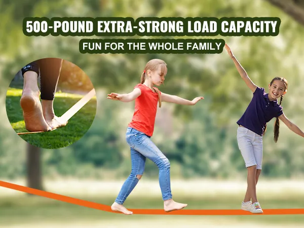 Deze slackline-set is een leuke manier om samen tijd door te brengen. Hij is eenvoudig op te zetten en af te breken. Hij bevat een slackline van 61 voet en een trainingslijn van 62 voet, wat hem ideaal maakt voor zowel kinderen als volwassenen. Dit betekent dat beginners snel leren. De trainingslijn helpt beginners hun evenwicht en coördinatie te verbeteren. Onze slackline kan tot 500 lbs dragen, wat de veiligheid garandeert. De duurzame constructie zorgt ervoor dat de set lang meegaat. Daarom is hij een ideale aanvulling op elke achtertuin. Geniet van urenlang plezier en fitness met het hele gezin.