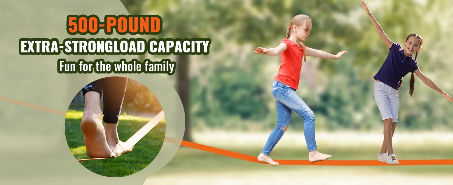 Dankzij het uitzonderlijke draagvermogen kunnen meerdere mensen tegelijkertijd balanceren en wordt teamwerk en wederzijdse ondersteuning bij het overwinnen van moeilijkheden bevorderd. Deze slackline is bijzonder geschikt voor kinderen.